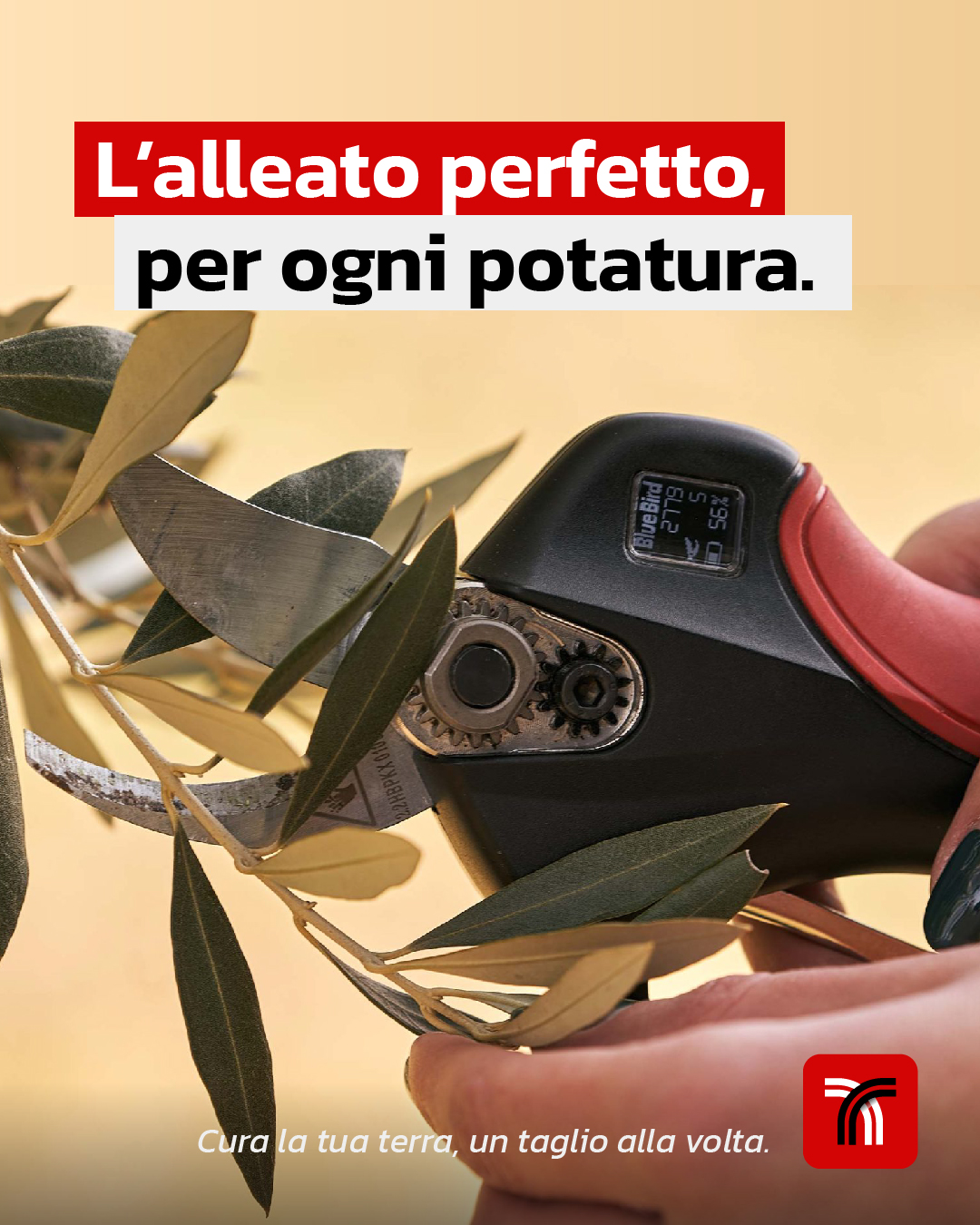 10 Marzo 2025La forbice elettrica Blue Bird PS 23-35 Faster unisce potenza e agilità per professionisti del verde. Il motore brushless da 550 W garantisce lunghe sessioni di lavoro senza surriscaldamenti. Le tre batterie al litio 16,8 V – 2,5 Ah offrono fino a 4,5 ore di autonomia continua. Il sistema a tre batterie assicura ricariche alternate per non interrompere il lavoro.
