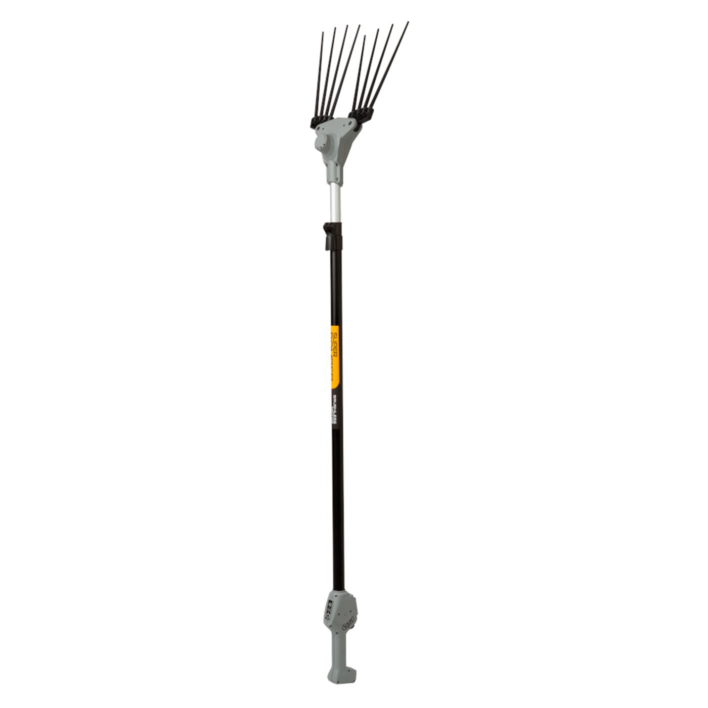 L’impugnatura ergonomica integra l’interruttore e la regolazione della velocità su tre livelli (800 – 980 – 1150 rpm), rendendo lo scuotitore pratico e maneggevole. È inoltre dotato di asta telescopica estensibile da 2400 a 3600 mm con un peso di soli 2,75 kg,