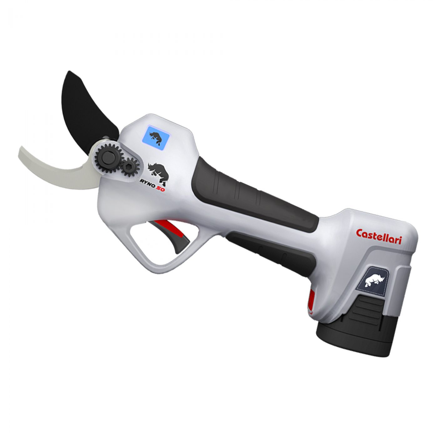La forbice elettrica da potatura Castellari Ryno 50 è un utensile ideale per la cura di frutteti, vigneti e oliveti, fornendo tagli ampi e precisi. Leggera e maneggevole, si adatta a lavori impegnativi, offrendo grande praticità grazie alle batterie intercambiabili e poco ingombranti inserite nella base della forbice.
