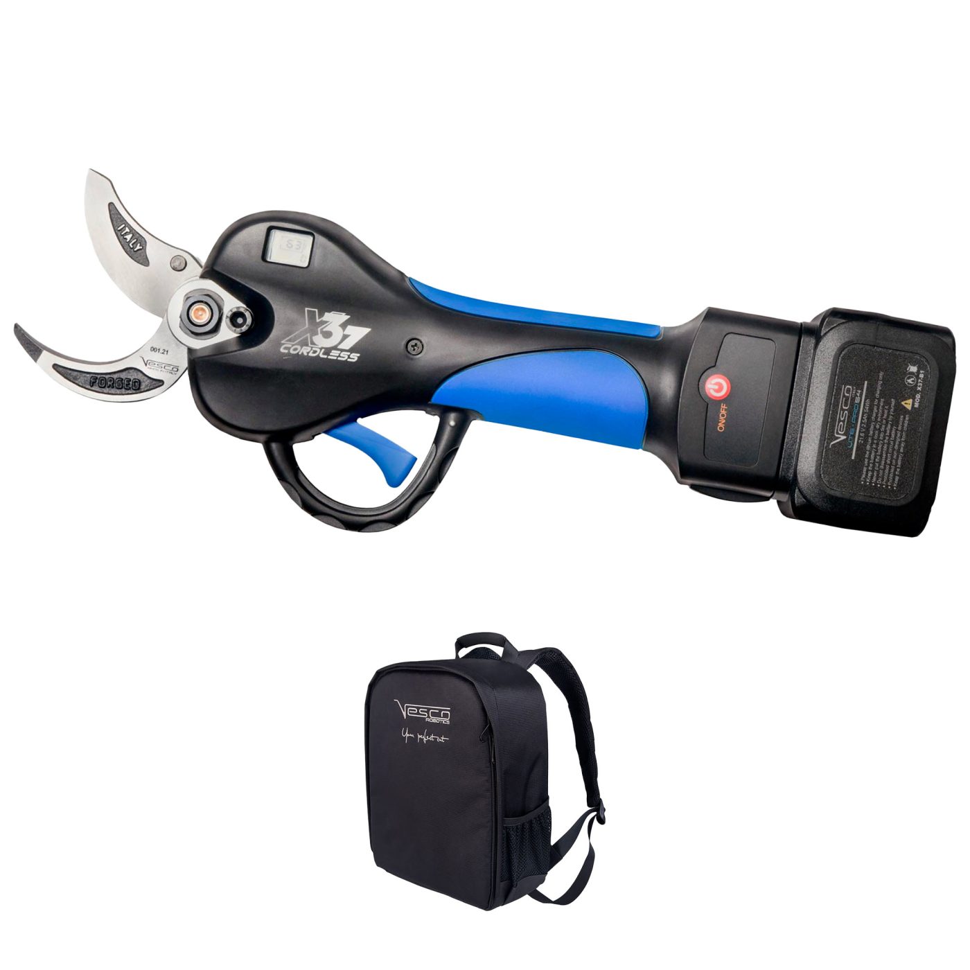 La forbice da potatura elettrica Vesco X37 rappresenta una delle soluzioni cordless più avanzate per agricoltori, frutticoltori e professionisti del verde che richiedono potenza, precisione e massima libertà di movimento durante le operazioni di taglio. Progettata con un sistema robotizzato senza filo, integra una batteria intercambiabile montata direttamente sul manico tramite un innovativo innesto rotazionale, che garantisce ergonomia, bilanciamento e praticità, permettendo di lavorare in totale autonomia anche per diverse ore consecutive.