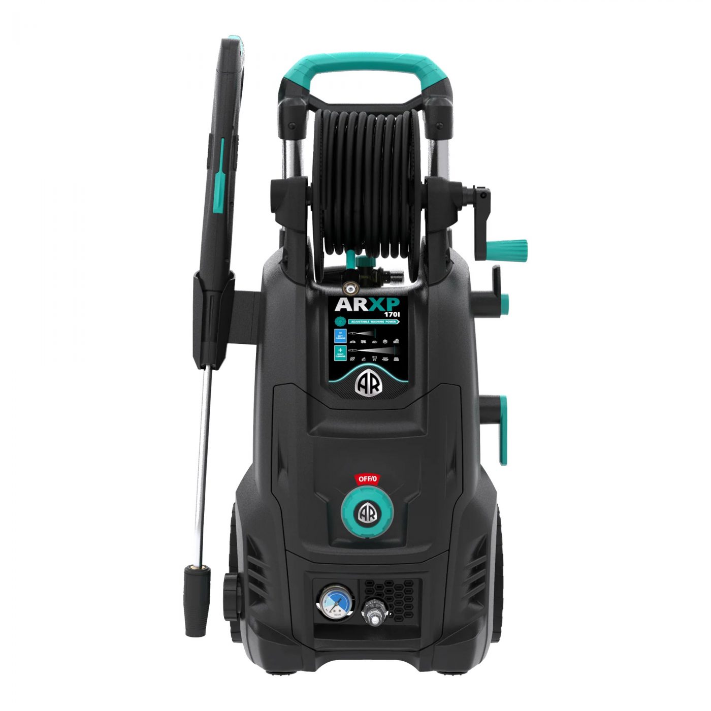 Al termine delle operazioni di pulizia, la ARXP 170I rende facile mantenere tutto in ordine grazie all'avvolgitubo in pressione e al portaccessori. Questi componenti pratici permettono di riporre il tubo e gli accessori in modo ordinato, assicurando che la macchina sia sempre pronta per l'uso successivo e che l'area di lavoro rimanga libera e organizzata.
