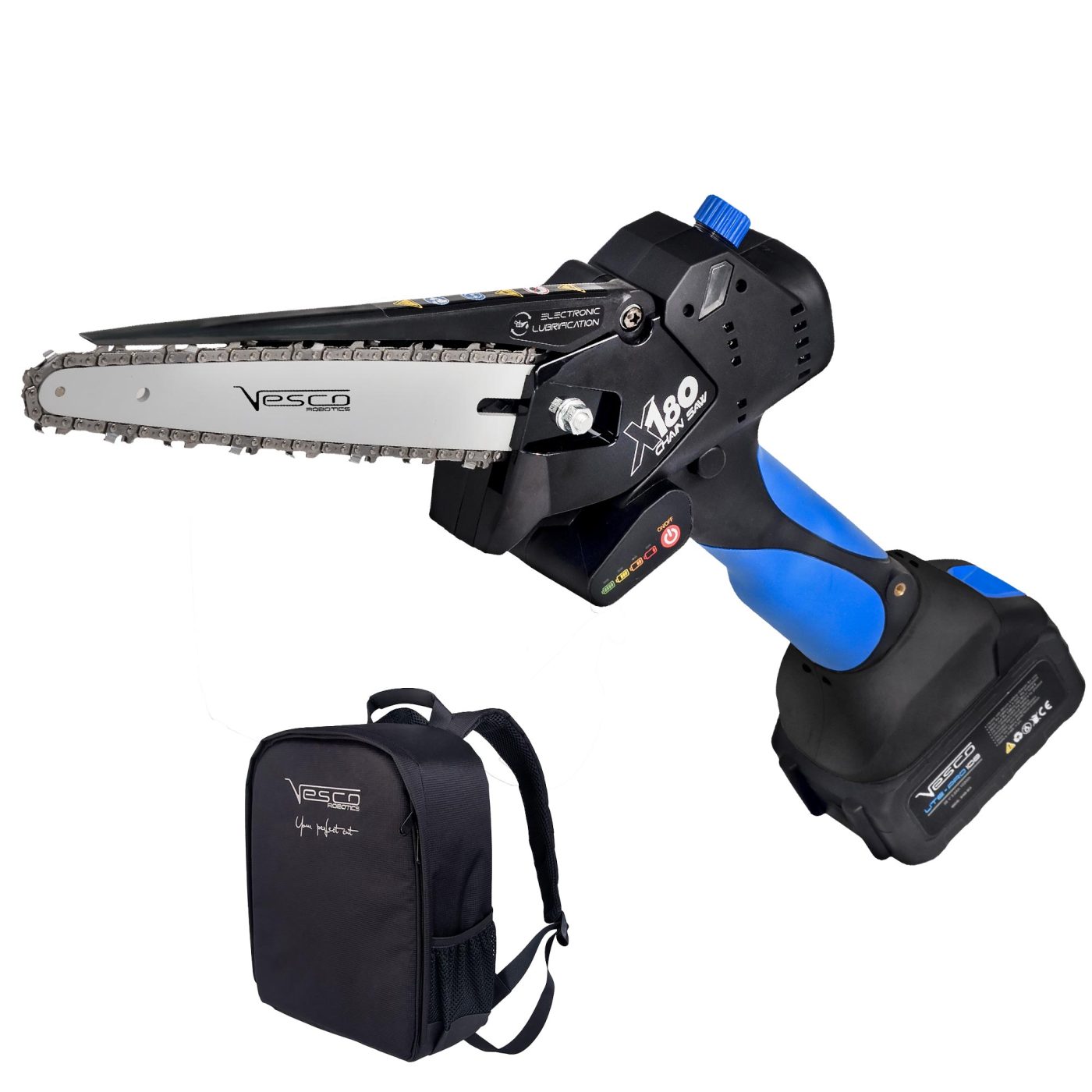 Con un peso di soli 1,5 kg con batteria (0,95 kg senza batteria), il Vesco X180 garantisce un eccellente bilanciamento, riducendo l’affaticamento dell’operatore. È inoltre compatibile con asta di prolunga, rendendolo uno strumento estremamente versatile per la potatura in altezza senza l’uso di scale. Il LED indicatore di carica permette di monitorare facilmente lo stato della batteria, migliorando l’organizzazione del lavoro.