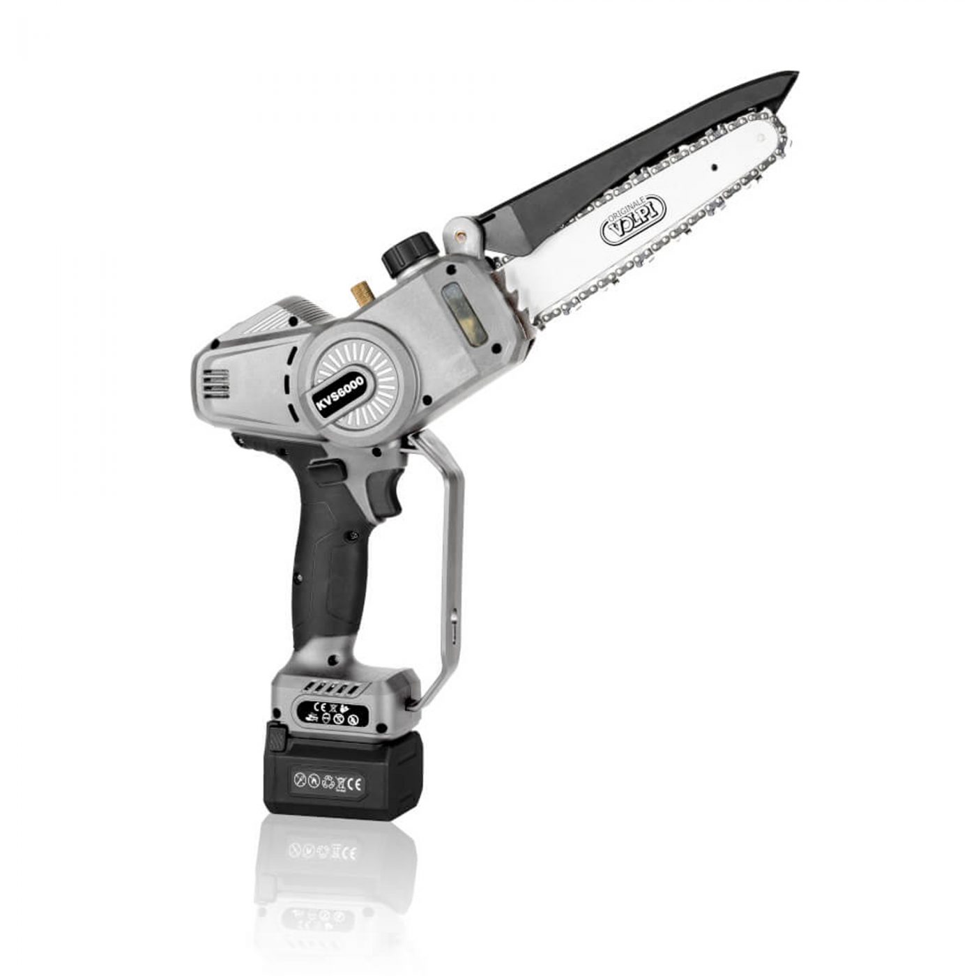Il potatore KVS6000 dispone di doppio interruttore di sicurezza, catene da 1/4" con copertura protettiva e barra da 8", impugnatura ergonomica con protezione per la mano: dotazioni essenziali per consentire un lavoro in sicurezza.