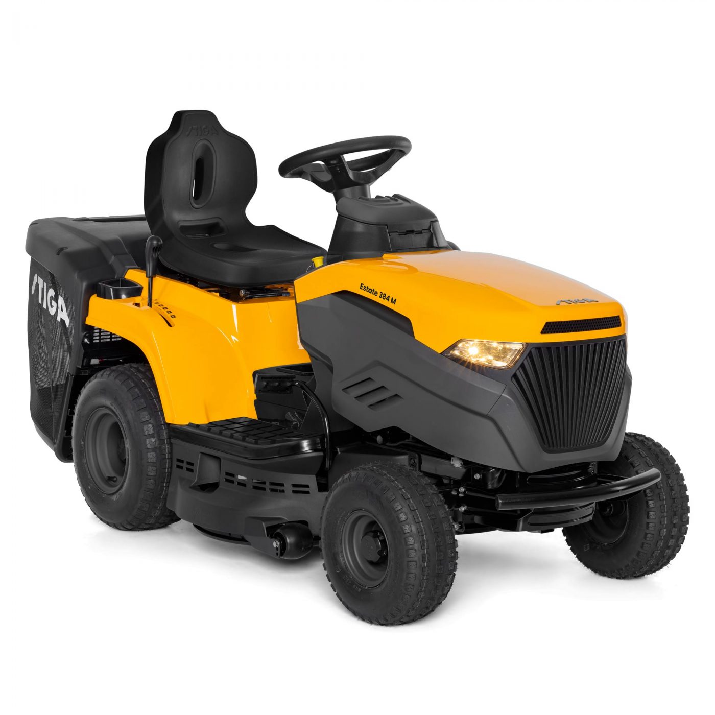 Il trattorino da giardino STIGA Estate 384 M monta un motore a scoppio ST 350 Powered by STIGA con potenza di 5,8 kW @ 2400 rpm. Dotato di trasmissione meccanica con 5 marce avanti + 1 retromarcia, questo trattorino è equipaggiato con sacco di raccolta posteriore da 200 litri e volante rialzato per garantire una posizione di guida ergonomica e confortevole.